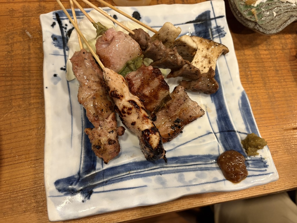 アップで見ると、焼き色の美しさがよくわかります。じっくりと丁寧に焼き上げられた串は、表面はこんがり、中はしっとり。食堂てらだの「ちゃんと作る」姿勢がこんなところにも表れています。