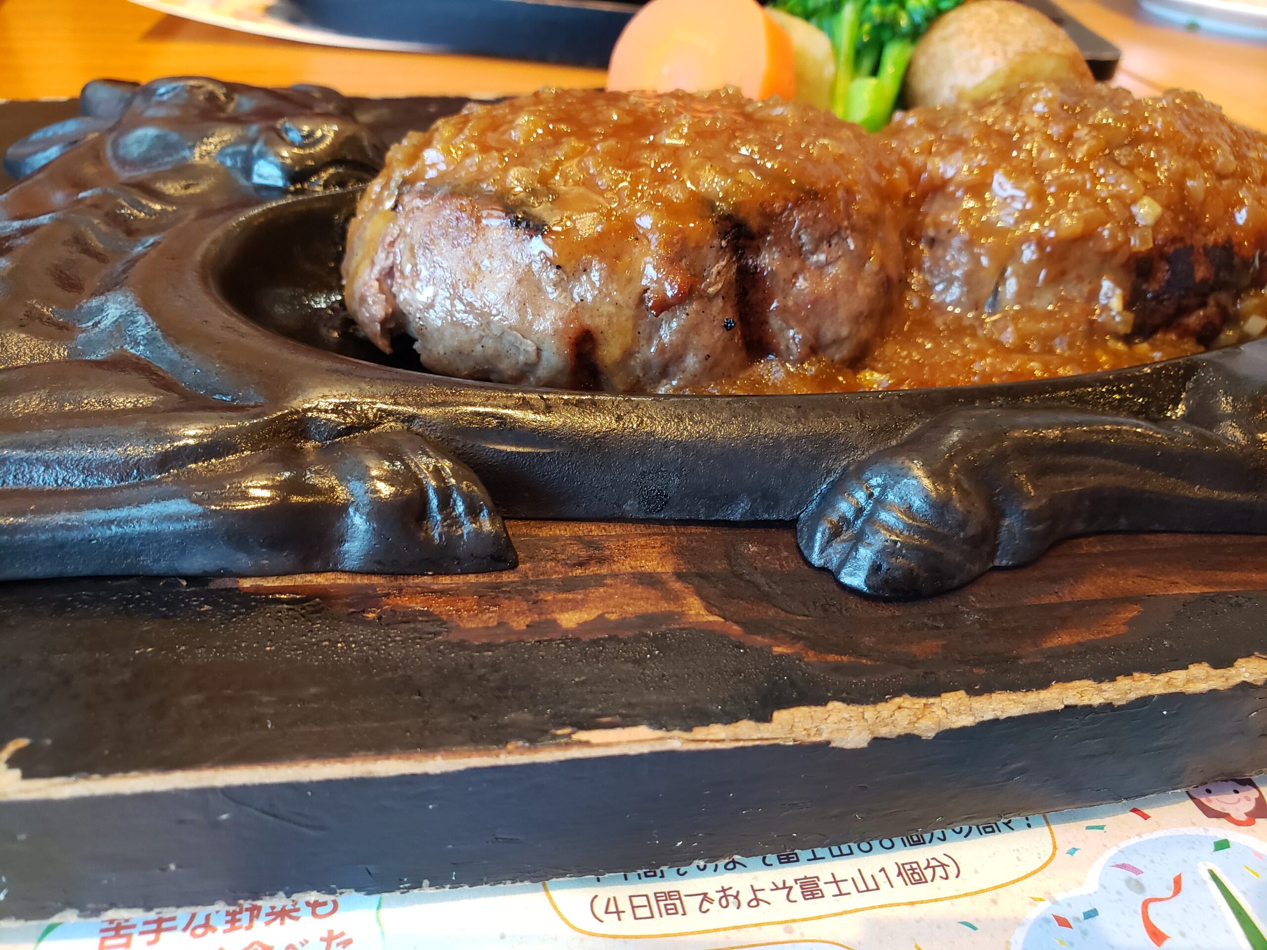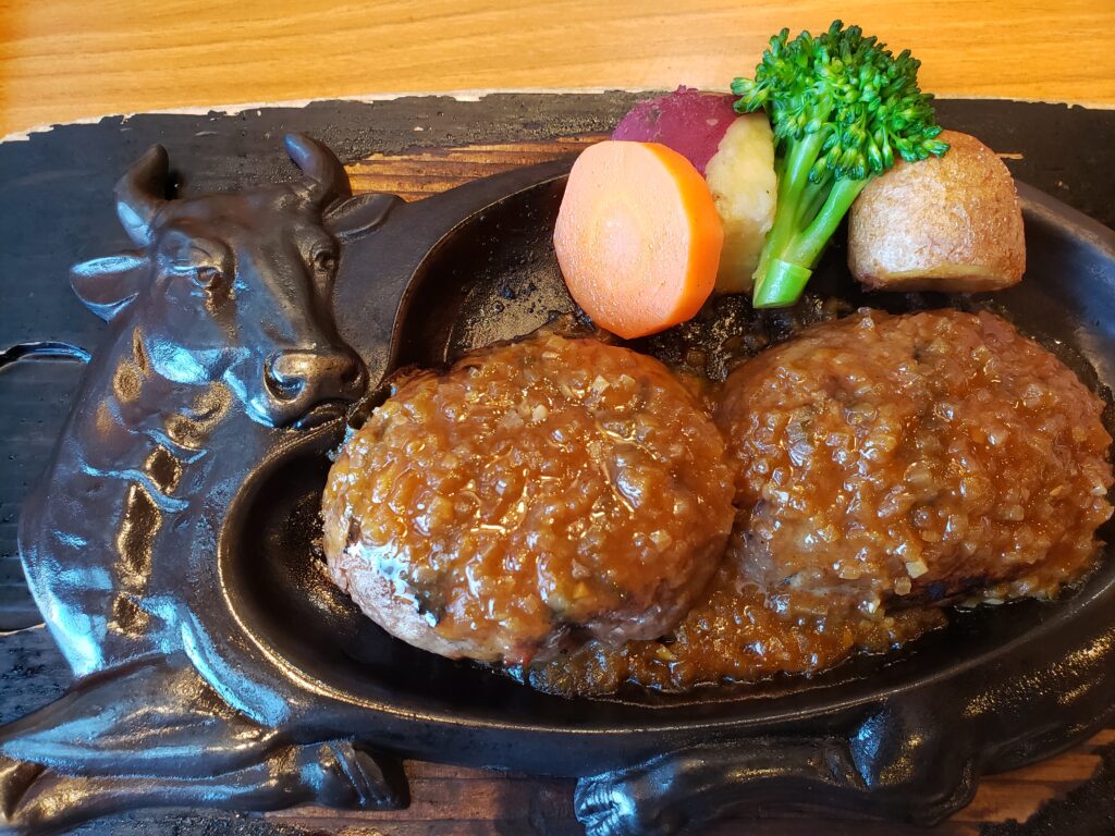 さわやかの名物といえば、やはり「げんこつハンバーグ」。鉄板の上に運ばれてきた大迫力のハンバーグを、目の前でスタッフが半分に割ってくれます。中からは肉汁がじゅわっとあふれ出て、そのまま鉄板でじっくり焼き上げてくれます。このライブ感がたまりません!口に入れた瞬間のジューシーさと、炭焼きならではの香ばしさが絶妙にマッチしています。ソースはオニオンソースとデミグラスソースから選べます。静岡に来たなら、一度は絶対に食べてほしい一品です😊